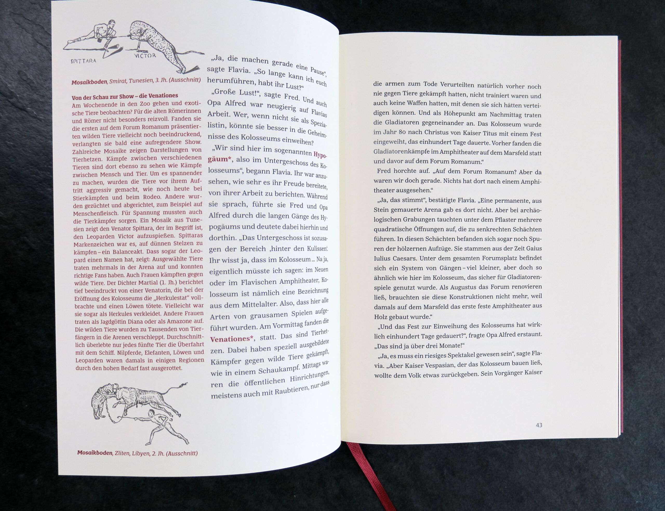 Im Kolosseum führt die Bauforscherin Flavia die beiden hinter die Kulissen ins Untergeschoss. Fred darf sogar mit einem nachgebauten Aufzug in die Arena fahren. Doch plötzlich ist alles anders: Er hört Wildkatzen fauchen und Bären brüllen. Als der Aufzug wieder nach unten fährt, weiß Fred, dass er im alten Rom gelandet ist! Er wird der Gehilfe des Medicus und zieht sogar in die Gladiatorenschule ein. Der fiese Imperator Commodus hat sich für die Festspiele eine besondere Attraktion ausgedacht. Da hat Fred eine Idee. Wird sie funktionieren?
